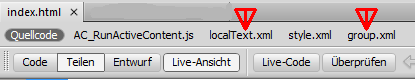 2. Teilen und Live-Ansicht einschalten. Es werden u.a. die Dateien group.xml und localText.xml angezeigt.